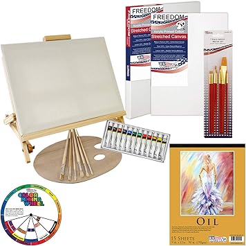 Us Art Supply 35 Piece Oil Painting Table Easel Set With Oil Paint Colors 11 X14 Stretched Canvases Oil Painting Paper Pad 16 Artist Brushes